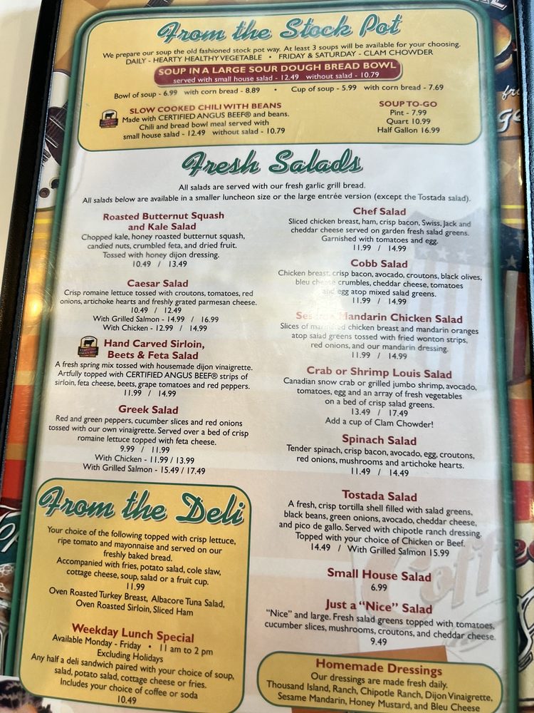 your choice of the following topped with crisp lettuce, ripe tomato and mayonnaise and served on our freshly baked bread, accompanied with fries, potato salad, cole slaw, cottage cheese, soup, salad or a fruit cup, oven roasted turkey breast, chicken salad, albacore tuna salad, oven roasted sirloin, sliced ham, pastrami