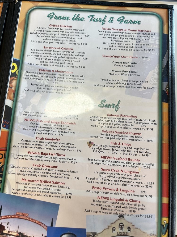 Velvet Grill & Creamery is a must-visit American restaurant located in Modesto, California. This casual dining spot offers a wide range of options for every meal of the day, from breakfast to dinner and dessert. With a menu that includes many vegetarian options, Velvet Grill & Creamery caters to a diverse range of dietary preferences. The restaurant also offers takeout, delivery, and catering services, making it convenient for every occasion. The cozy atmosphere with moderate noise levels, outdoor seating, and friendly waitstaff ensure a pleasant dining experience. Whether you're looking for a place to enjoy a meal with friends, family, or even your furry friend (dogs are allowed), Velvet Grill & Creamery has something for everyone. Don't forget to try their beer and wine selection to elevate your dining experience.